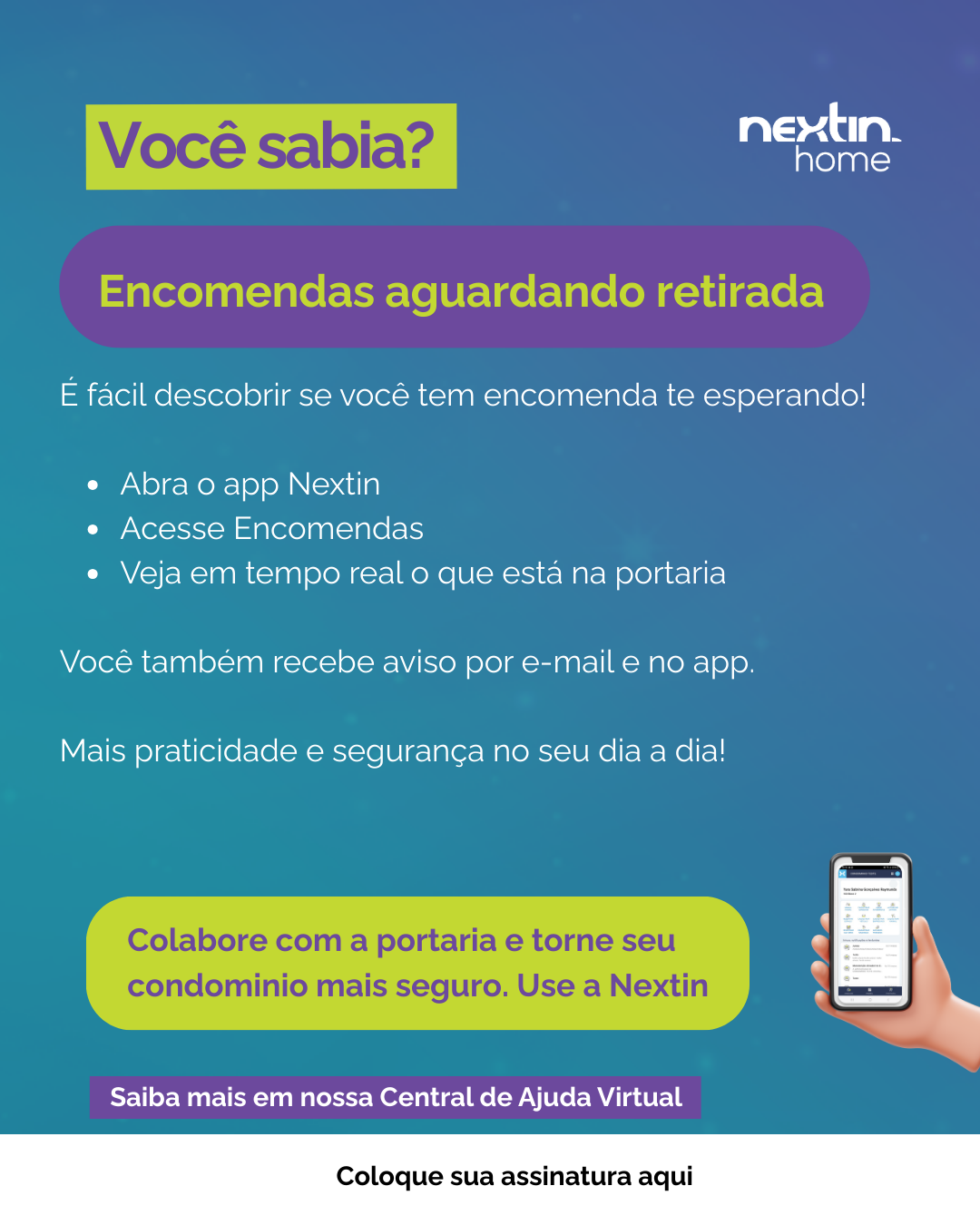 Receber encomendas com praticidade e segurança é uma das facilidades oferecidas pelo app Nextin. Se você está em dúvida se tem algo esperando por você na portaria, fique tranquilo! O sistema envia notificações por e-mail e no aplicativo, além de ...